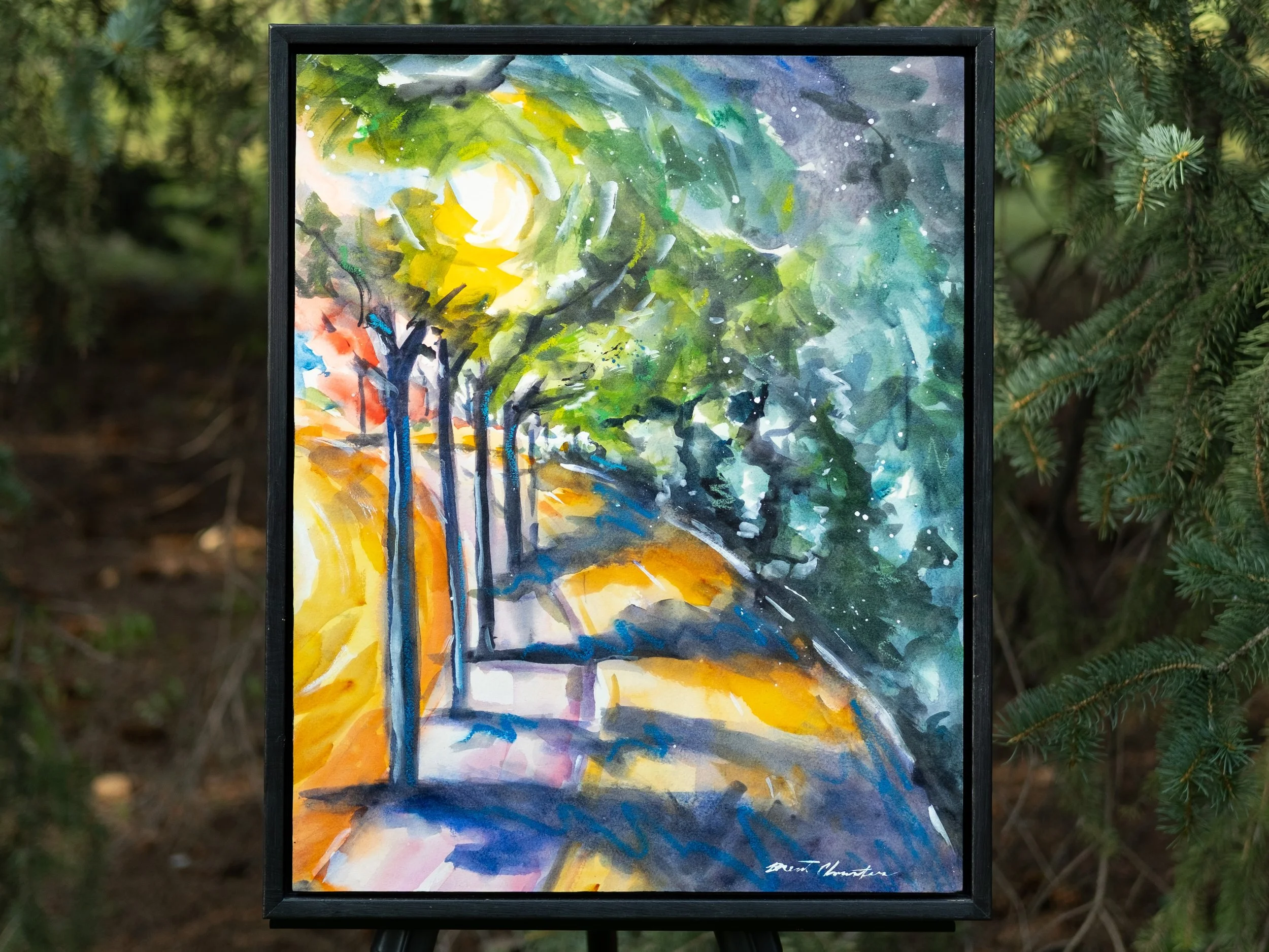 woodlands at night - 16 x 20 - watercolour mounted on panel - $465 framed - prints available