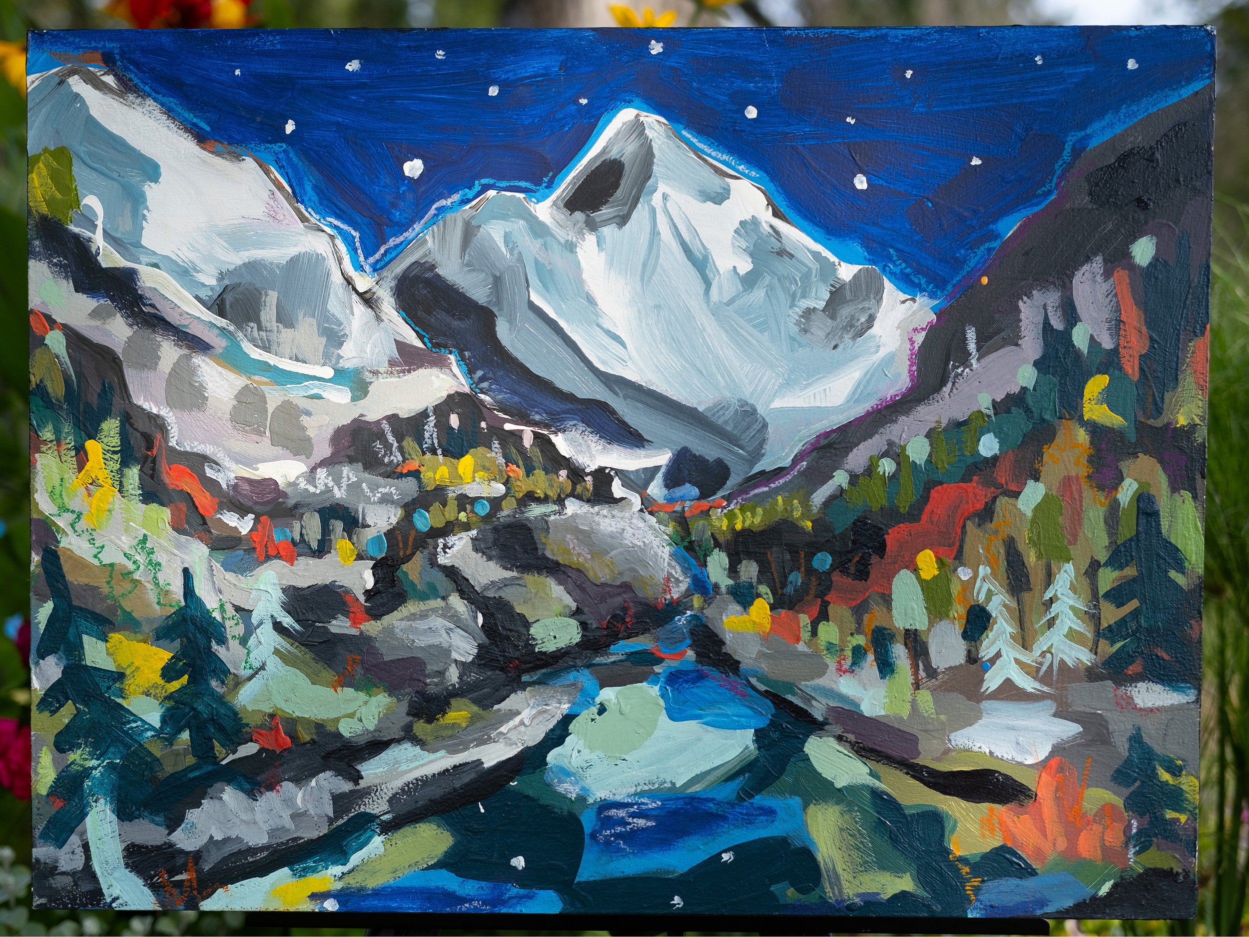 mountain lake under stars - 18 x 24 - acrylic on panel - $650 - prints available
