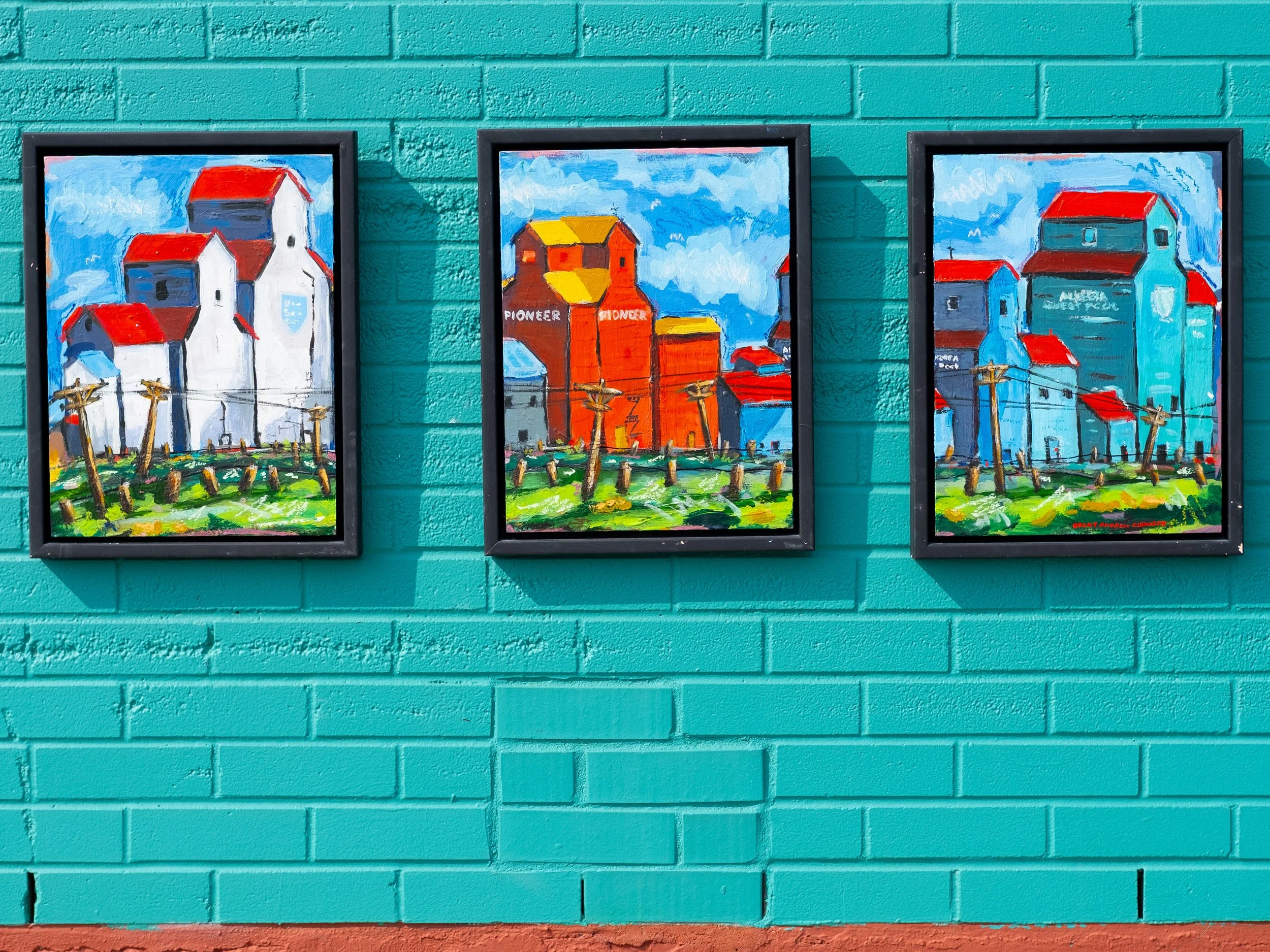 wheat pool - framed triptych - 36 x 16 - acrylic on panel - $750 - prints available