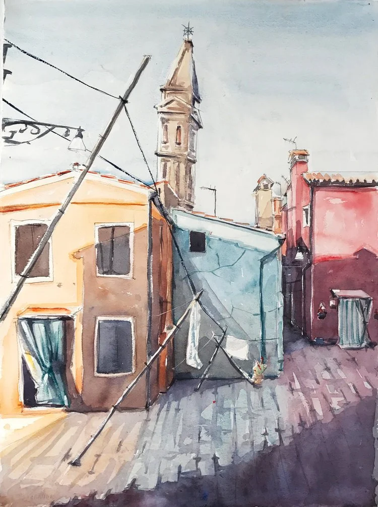 Exploring burano island near venice. the beautiful multi coloured homes, painted to match the fishing boats.