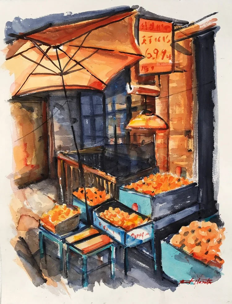 golden market - 18 x 24” - watercolour on panel - sold